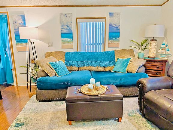 This charming home is ready for you to enjoy inside and out-perfect as a retirement retreat or seasonal snowbird escape. Beach is right across the street! The affordable Monthly fee of $297 even includes taxes! Step inside to find two spacious living areas, each with its own cozy electric fireplace, plus a full-size washer and dryer for convenience. The home features a brand-new tiled walk-in shower, two comfortable bedrooms, and a reverse osmosis system for clean drinking water. Best of all, it comes completely furnished-just bring your suitcase and start enjoying the Florida lifestyle! Located in PepperTree RV Resort Community amenities include a clubhouse, sparkling pool, swing sets, basketball court, and a beautiful pond with waterfalls where you can relax and unwind. Historic Downtown St. Augustine is 15 minutes away. Home is being sold AS-IS.