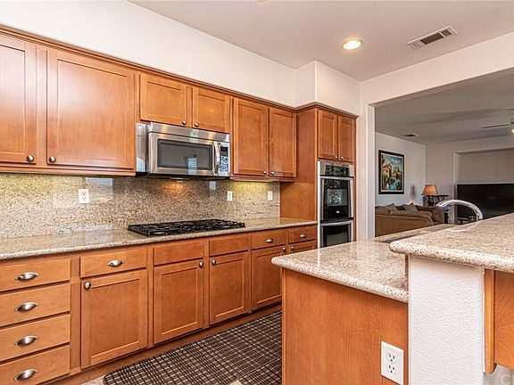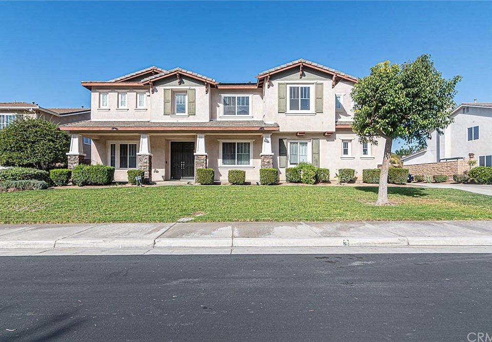 Stunning, estate like home located in the exclusive Sunset Ridge Estates. Gated community with Panoramic views of the city,this home has a prime lot location. The large floor plan boasts 4 spacious bedrooms and 4 bathrooms with a 5th bedroom option on the first floor. There is also a huge loft area and separate office. The gourmet kitchen has granite counters with full backsplash, a large center island, stainless steel appliances with double oven and plenty of overhead lighting. This opens to the dining area and lovely, oversized family room with fireplace and french door access to the backyard. The upstairs features 4 bedrooms including the impressive master suite which also gives access to the large double door entry balcony. Enjoy the panoramic view on those warm summer nights. Master-bath features a large, walk in shower with seating as well as a sunken tub and enormous walk-in closet. One of the bedroom also has its own attached bathroom while the other two share a large hall full bath. All the bedrooms are spacious with walk in closets. The backyard is an entertainers dream!Sparkling salt water pool and spa, stamped concrete throughout, a gas fire pit with pergola as well as a full basketball court!First floor laundry room with utility sink. All windows have dressings. Gated drive-through RV parking. Energy efficient with dual pane windows as well as solar panels which eliminate an electric bill.VIEWS VIEWS VIEWS! This home offers absolutely everything.