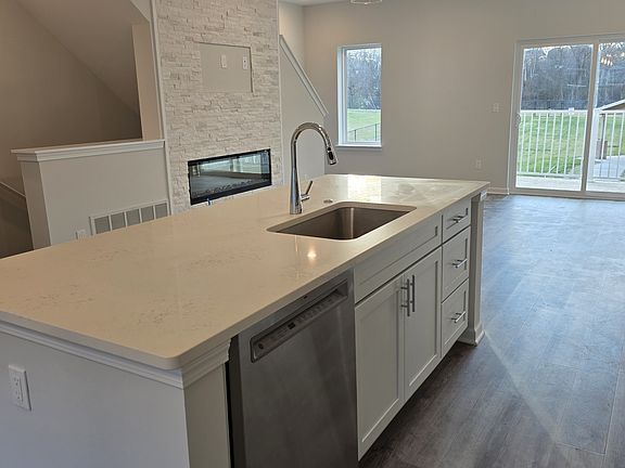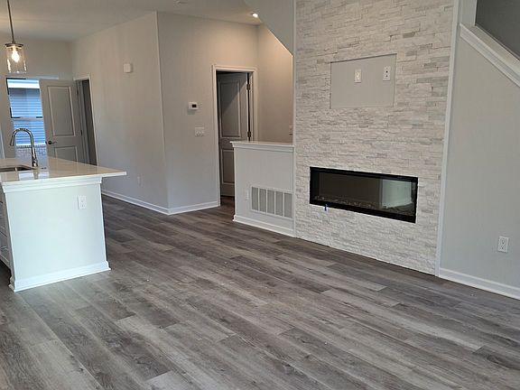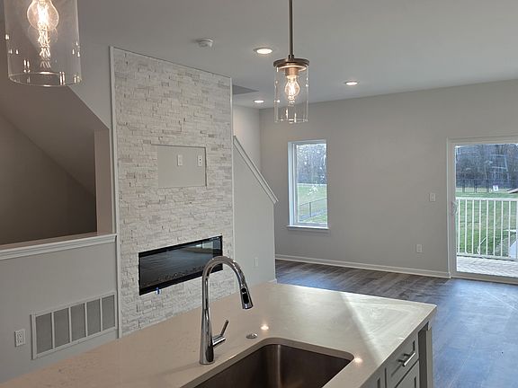 On the second floor, enjoy 9' ceilings, large windows, and an inviting flow between the living room, dining area, and kitchen. The first and second floors feature LVP flooring, including the powder room for easy maintenance. The stylish kitchen includes upgraded Merillat cabinetry, quartz countertops, two pantries, and stainless steel appliances (range, microwave, dishwasher). Cozy up in the great room with the stacked-stone fireplace and step outside to your balcony overlooking the park.