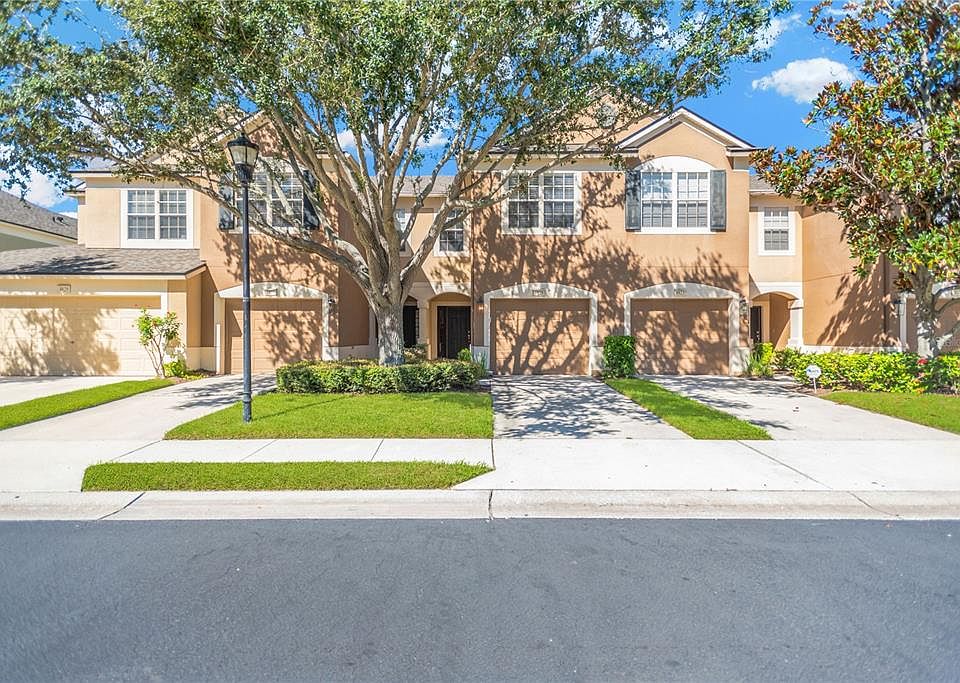 Welcome home! This maintenance free townhome is clean and ready for your next adventure. Enjoy the Florida lifestyle with a premium water view. The spacious floorplan offers a 1-car garage, 3 bedrooms, 2 full bathrooms, half bath downstairs and large screened in lanai. Functional, livable and comfortable, this townhome awaits your personal touch. Wide open views of the pond beyond the sliders welcome you upon entering. The cozy kitchen features upgraded wood cabinets, granite countertops, stainless appliances and tile flooring. Pull up a bar stool at the kitchen counter for casual dining. Decorative shiplap adorn the side of the bar and accent the kitchen area nicely. The open floorplan is perfect for entertaining - kitchen, dining and living areas flow seamlessly together. The living room is spacious and will easily accommodate oversized furniture. It’s light and bright, and you see both the greenery and water view in the backyard through a glass double slider. Enjoy coffee on the back patio in the mornings to get your day started. A half bath downstairs is ideal for guests and saves a trip up the stairs. Upstairs, you’ll find the master and ensuite bath, 2 secondary bedrooms and another full guest bathroom. The secondary rooms are spacious and both have ceiling fans and generous built-in closets. The oversized master bedroom features stunning water views and an ensuite bath with double sinks and a large shower/tub combo - offering versatility and space savings. Bubble baths after a long day are calling! The laundry room is also located upstairs for ease of use (washer & dryer included). Premium Swiss Krono laminate flooring runs throughout the entire upper floor. Valhalla is an established GATED townhome community tucked away from the main road that feels private and exclusive. Amenities include community pools and common area mailbox kiosk. Utilities including water, trash, cable, internet & pest control are all covered by the HOA fee. The HOA also takes care of all exterior maintenance (including roof), which is ideal for those that enjoy a low maintenance lifestyle. Important ages include newer roof (2023), water heater (2023), & HVAC (2019). This home is conveniently located near shopping (walk to super Target!), dining, major highways I75 & 301, and close access to the crosstown expressway make for an easy commute to downtown Tampa. Welcome home!