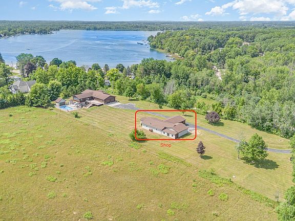 Discover your dream retreat next to Coldwater Lake where country charm meets modern comfort in a stunning raised-ranch-style escape. This exquisite single-story home, bathed in natural light, offers a harmonious blend of rustic design and contemporary elegance. With 4 bedrooms and 2.5 bathrooms, this property provides generous space for creating a cozy and inviting living environment. Upon entering, you'll be captivated by the warm, wood-paneled ceilings and the inviting ambiance of the stone fireplace in the living room—perfect for relaxing evenings. The expansive kitchen is a chef's delight, featuring rich wooden cabinets and sleek appliances, with an adjacent dining area that's beautifully illuminated by natural light. Embrace the outdoors with a sweeping porch and spacious decking, ideal for enjoying serene sunrises and sunsets. The fenced outdoor pool and lush green lawns offer a tranquil escape, while the heated pole barn provides a substantial workshop, storage area, and half bath. This home is a blend of rustic allure and modern convenience. Whether you envision indulgent relaxation or ambitious projects, this property is poised to fulfill your desires.