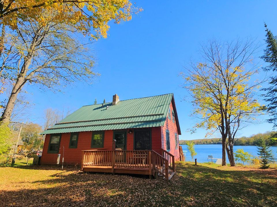 You just found it!! This super-charming, nostalgic lake cabin is on a level lot, with sugar sand swimming on a gin-clear lake! This 4-season home or cabin has 3 levels of living space, with plenty of room to bunk the troops. It offers togetherness and separation when you need it. The main floor has two bedrooms and a full bathroom. The upstairs loft is comforting and cozy, with a bedroom, a separate open sleeping area, and a 3/4 bathroom. The lower level has a large family room, laundry room with mechanicals, and a storage room - and it's a walkout basement! All appliances and furnishings are included, and also the dock. There is a 2-car garage with brand new siding, doors and metal roof. Atkins Lake is 170 acres, 80 feet deep and offers good fishing for panfish, smallmouth bass, northern pike, walleye and trout! The property is 1.2 acres, half of it on the lake side of the road and half of it across the road. High speed fiber optics serves the area. There are several updates done & the cabin will have the 4' x 5' lower level lakeside windows replaced prior to closing.