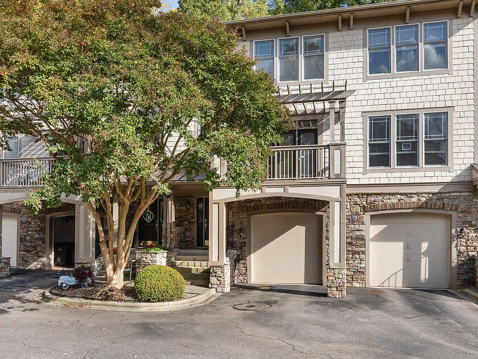 Gorgeous curb appeal with an unbeatable Raleigh location! This beautifully maintained townhome offers a fantastic layout with hardwood floors throughout the main living level. The spacious living room opens to a private balcony porch, perfect for relaxing or entertaining, and flows easily into a separate dining room and a well-designed kitchen with ample counter space and great functionality. Upstairs, you will find two large bedrooms each with their own ensuite bathroom. The primary suite features a desirable walk-in closet. An almost unheard of bonus feature for a townhome is the enormous garage space on the lower level that provides room for parking, storage, or even a home gym setup. Recent updates include an upgraded HVAC system, a replaced water heater, and the addition of a water filtration system for peace of mind. Located just minutes from Crabtree Valley Mall with quick access to Highways 70 and 440 and an easy commute into Downtown Raleigh, this home truly combines comfort, convenience, and style.