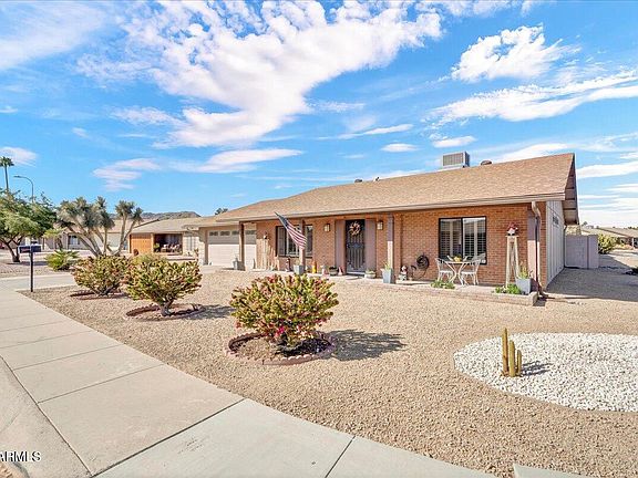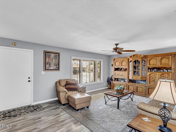 Nestled in a quiet cul-de-sac within the highly sought-after 55+ active adult community, this impeccably maintained home is the definition of turnkey living. Thoughtfully upgraded for comfort, style, and convenience, it offers everything you need to settle right in. A recently added block wall encloses the spacious backyard, complete with premium pet-friendly turf that stays cool in the summer and is effortless to maintain. Step inside to find fresh interior and exterior paint, newer flooring throughout, elegant shutters, and a beautifully upgraded primary bath. The kitchen is a true standout, featuring practically new modern appliances (all included!) & a massive island perfect for entertaining. A new A/C unit ensures year-round comfort, while additional upgrades like installed gutters, oversized garage with an insulated door and built-in cabinets, H2O heater 2019, and abundant storage make everyday living a breeze. Beyond the home, enjoy easy access to everything you need! The nearby Ahwatukee Recreation Center offers clubs, a gym, pool, pickleball courts, and more, while the community golf course is just minutes away. Shopping, dining, and entertainment options abound, with Texas Roadhouse, Main Event, IKEA, Safeway, Bashas, Target, and AMC all close by. Outdoor enthusiasts will love the nearby hiking and biking trails, and with quick freeway access, getting around is effortless.