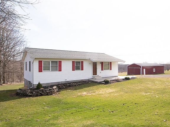 7 + ACRES of Pastures & Woods surround this Cozy Ranch & HORSE BARN w/ electric ! Large Living Room w/ newer PLUSH CARPET! Oak Kitchen w/ spacious Eating Area ! Sliding door leads to 2 tier DECK with magnificent views of your beautiful property! Large MASTER BEDROOM w/ Double closets ! FULL WALK OUT Basement could easily be finished to add 900 more SF! EXPECT TO BE IMPRESSED! Newer ARCHITECTURAL ROOF ! NEWER Hi E furnace and Hot water heater !