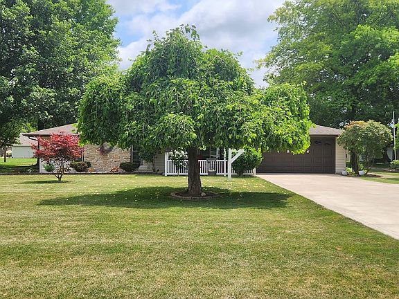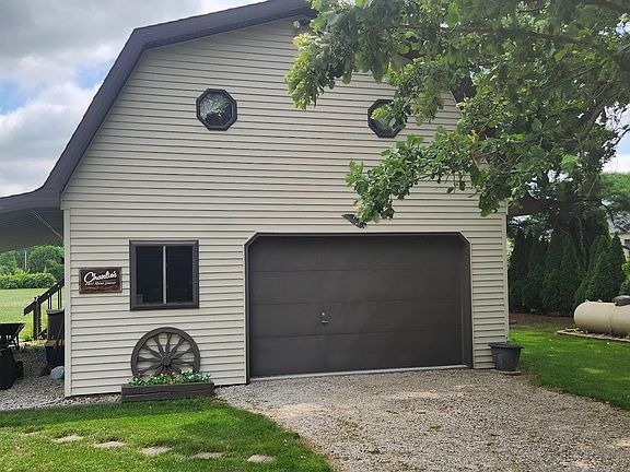 Country feel yet close to all your everyday needs. This 3 bedroom 2 full bath ranch home situated on .79 acres features cozy living areas and a huge 18 x 14 master bedroom with a full remodeled bathroom and a walk-in closet. Extra space in a 15 x 21 family room with a gas fireplace. Also a 15 x 18 four season room overlooking the back lot that host a large patio and a 21 foot diameter, 4 foot deep above ground pool. The outbuilding measures 27 x 22 and has a 2nd story with some finished area that would allow for a variety of uses. Comfortable covered front porch, Updates include but not limited to; kitchen flooring 2024, both bathrooms remodeled 2022, new furnace 2022, replacement windows 2015, new garage door opener 2023, new garage overhead door and epoxy floor 2020, Outbuilding roof replaced 2020, kitchen remodel 2015. Kitchen Appliances and clothes washer and dryer remain but are not warranted.