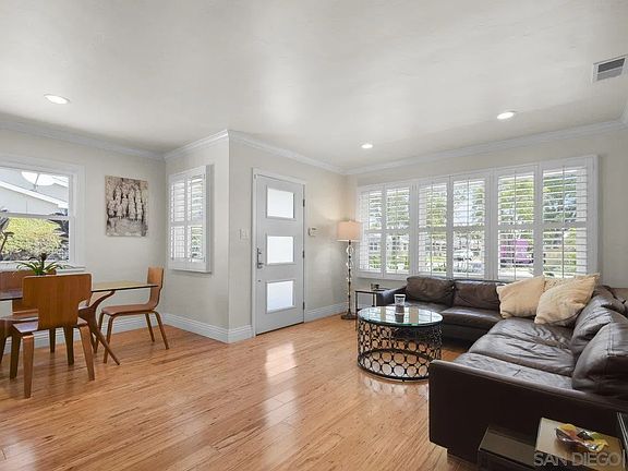 This Gorgeous Talmadge Beauty has all you need for todays modern living. Expansive single level living with an amazing and updated kitchen, luxurious eucalyptus wood flooring, remodeled bathrooms and a sundrenched family room. It boasts a meticulous and very Private Backyard that includes lush and tropical landscaping, a custom built-in gas firepit, slate tile patio and a relaxing large spa. This Huge yard is an Oasis and an Entertainers dream! The remodeled kitchen includes marble countertops and upgraded stainless steel appliances. Some additional features include a PAID solar system, plantation shutters, A/C, dual-paned windows, electric car charging station, skylights, French doors, 2-car Tandem Garage and MORE! The amazing attention to detail is very apparent throughout the home and will not disappoint. This is a Must See!