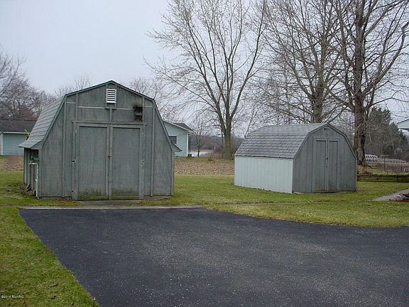 Waterfront stick built brick and vinyl home on the popular Martiny Chain of Lakes. Ranch design with small loft area are made up of round portion for living room, main bath, and two bedrooms. Many areas of custom cabinetry. Multiple slider doors allow access to water front yard from living room, dining area, and from attached garage. The Martiny chain has miles of connected water areas to cruise and investigate. The three lots allow for home with garage, two storage buildings and pole barn with workshop. Qualified buyers please contact a REALTOR for more information.