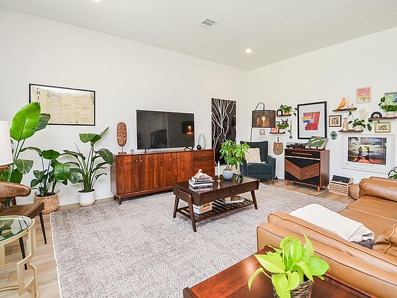 Wall of windowsDesigner luxury shadesSprinklered yardStainless appliancesUpgraded one-story homeOpen family roomQuartz countertops