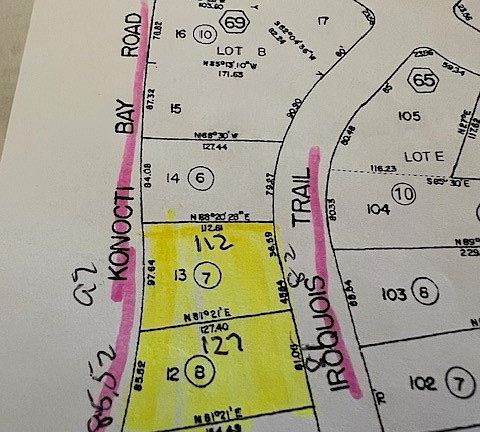 TWO lots being sold together. (also includes 4839 Iroquois) Perk tested for septic. Runs street to street across. Cleared-manicured nicely. 2 story would have lakeview. Dirt drive cut in so you can drive down. Should be close to a half acre with both. Water available. Merge together to make 1 address and 1 tax record. Nice spot.