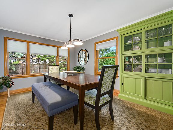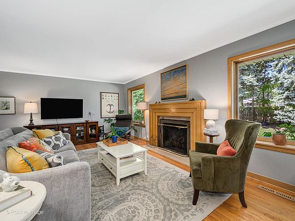 Gorgeous custom mid-century gem with 4 bedrooms, 2-1/2 baths, full basement plus addition on huge lot in fabulous Fairview South location. Great flow from the foyer leads into the kitchen or straight to the living room featuring a gas fireplace flanked by 2 immense pocket picture windows; then through to a separate dining room; and around the corner to a new sun-filled office. Enjoy views of the lush, fully fenced backyard from all three spaces. There's a half bath tucked away and then around to the eat-in kitchen featuring original charming cabinetry, granite counters and updated stainless appliances. The other direction from the foyer leads to the private primary suite filled with custom mid-century built-ins, a walkout patio, new full bath with walk-in shower and second bedroom, office or yoga room. Head upstairs for 2 additional large bedrooms, full bath and adjacent storage spanning the width of the roof. Make your way downstairs from the kitchen for a large, partially finished basement recreation room, laundry room and separate work room. Lots of updates throughout - new AC, new office addition, new primary bath, 95% new windows, spray foam attic insulation - to name a few. See complete list for details. 2 plus car garage and a beautifully landscaped setting completes this pretty picture. Perfect location blocks from the Skokie Valley Trail bike/walking path and Emily Oaks Nature Center and especially convenient to the Skokie Swift for commuters. Welcome home!
