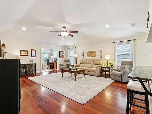 Beautiful 4 bedroom home in the heart of Metairie with a sparkling pool is waiting for you on Meadowdale. This home features an open Kitchen/Dining/Living combo with vaulted ceilings in the living room. The chef's kitchen features cherry cabinetry, stainless steel appliances and granite countertops. Beautiful wood floors throughout most of the home and no carpet. Large laundry room off the bedrooms for easy access. Going out towards the back yard, you will find a sunroom/office with lots of windows. The covered patio is perfect to relax under while you overlook your pool. The fenced in yard is large and even features an 12x16 shed and is completely fenced in for privacy. There is a 2 car garage as well as additional storage.