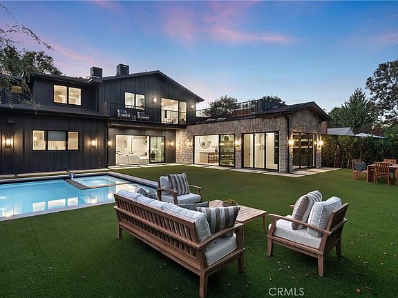 A bold statement in modern luxury living, this brand-new construction estate with an ADU sits on a sprawling lot in the heart of Valley Village. Designed for both everyday living and effortless entertaining, the open-concept main living area is anchored by a state-of-the-art chef’s kitchen equipped with premium Thermador smart appliances and a massive island with seating. The space is completed by a formal dining room and spacious living room that boasts an oversized sliding glass door which opens for seamless indoor-outdoor living. Step outside to the expansive backyard retreat where you can enjoy taking a dip in the sparkling pool/spa, or relax and unwind on the low maintenance artificial turf yard. Upstairs, you’ll find four generously sized ensuite bedrooms and a dedicated laundry room. The refined primary suite features a spacious private balcony, custom walk-in closet and spa-inspired bathroom, complete with a soaking tub, rainfall shower and double vanity. The attached ADU, with its own private entrance, offers a living room with a kitchenette, two bedrooms and two bathrooms. This versatile space is perfect for extended family, guests, an office or gym – the possibilities are endless. Additional highlights include a multifunctional media room, high ceilings throughout, a two-car garage and Control4 smart home system with built-in speakers, security cameras, a Nest thermostat and more. This property is ideally located within the top rated Colfax School District and only moments away from exceptional shopping, dining and entertainment options found nearby at NoHo Art District and along Ventura Boulevard.