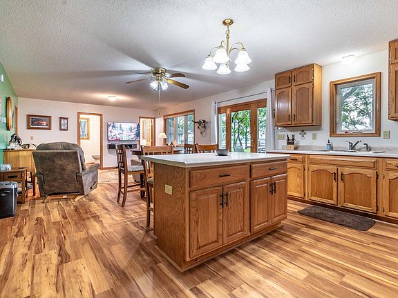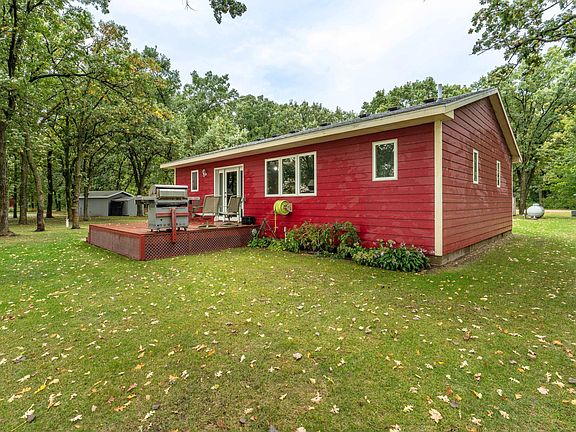 RUSH LAKE HOME! Check out this 3-bedroom 2-bath gem on a gorgeously wooded north shore level lot. Oak kitchen cabinets with an island. Open floor plan with door to a 16' x 12' maintenance-free lakeside deck, 6-panel interior oak doors, and laundry room with sink. Concrete crawlspace offering plenty of storage. Finished recreation room in the garage, plus 2 additional storage sheds with electricity (perfect to inflate your floaties!). Dock and boat lift included. Gorgeous, mature oak trees provide wonderful shade to enjoy the warm summer days! Enjoy time in a hammock relaxing, reading, and enjoying the views. Winter access across the east end of the bay to the snomobile trail.