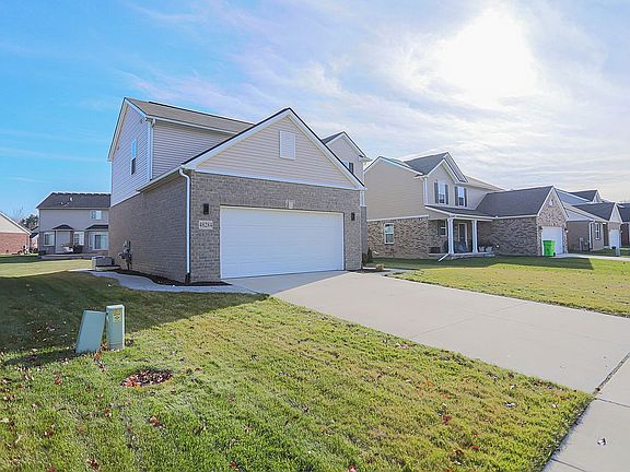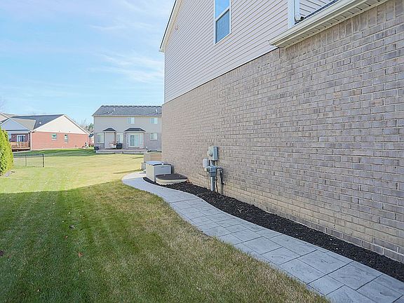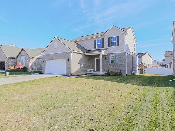 The main floor features luxury vinyl plank flooring, 9-foot ceilings, and abundant natural light. The stunning kitchen offers granite countertops, stainless steel appliances, a large center island, and ample cabinet storage, making it perfect for both everyday living and entertaining. The spacious great room includes a stone-surround gas fireplace for cozy evenings.
