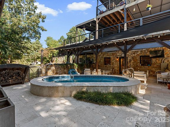 Escape to your own private retreat on 7.5 acres where everyday life feels like a getaway. This log-style home welcomes you with a wide wrap-around porch, the scent of cedar, and the sound of birds over the treetops. Spend mornings in the greenhouse or garden, afternoons by the heated saltwater pool, and evenings under the stars beside the firepit. A 1,717-SF heated workshop with upper-level storage is perfect for projects, collections, or creative work, while covered RV storage, chicken house, and trails add to the property’s self-sufficient charm. Inside, cherry hardwood floors, a stone fireplace, and a granite-topped kitchen create a warm and timeless feel. The primary retreat offers three closets, two full baths, and its own laundry. Two additional flex buildings provide space for guests, hobbies, or potential income. Thoughtful upgrades include four HVAC systems with ERV air filtration, whole-home water purification, and a full-house generator—every detail designed for comfort, function, and freedom. Take advantage of the 100+ acre Nature Preserve with walking trails directly across the street and enjoy the convenience of being a stones throw away from both Charlotte Douglas Airport and the city's newest shopping and dining development, The River District.