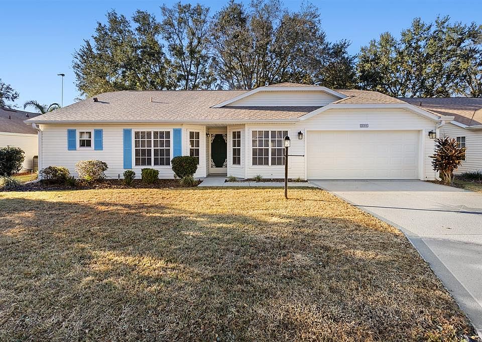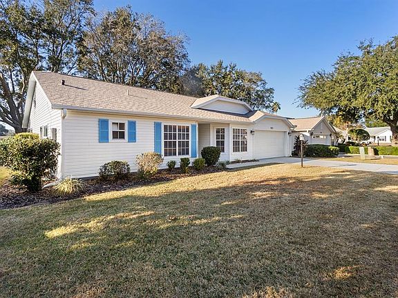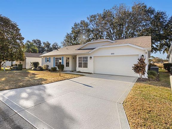 Plantation at Leesburg. Attractive 2-bedroom, 2-bathroom home with den/study and a 13 MONTH HOME WARRANTY that just needs your personal touch to make it your own. Updated kitchen has granite countertops, ample cabinets and a pantry and is open to a spacious living room which facilitates conversation with family and guests while preparing a fabulous meal. Tile flooring is in the kitchen, breakfast nook, bathrooms and laundry room, which has convenient cabinets for extra storage. The remainder of this home has attractive laminate flooring. The master suite has a dual vanity with a make-up area and a large walk-in shower. Both the master suite and living room boast sliding glass door access to a roomy all season carpeted lanai which opens to a large outdoor patio, making this a great spot for grilling and outdoor enjoyment, not to mention – no rear neighbors! The backyard has pretty, mature oaks and a partial water view as well as a view of hole 1 tee box on Crane’s Roost golf course. This home offers well-maintained landscaping and is close to the manor, pool, tennis courts, pickleball courts and more. Also conveniently located near the pro-shop, restaurant and pub. This 55+ gated community has amenities galore with 36 holes of golf, 3 recreation centers and pools, a softball field, tennis courts, numerous clubs and activities and a restaurant and pub. Call for an appointment today as this one is sure to go fast! Roof replaced March 2025, Water Heater replaced November 2018 and A/C replaced May of 2017.