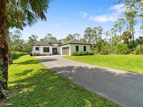 Stunning 2023-Built Home in Golden Gate Estates – West of Wilson Blvd! Welcome to your dream home in the highly desirable Golden Gate Estates! Built in 2023, this modern and stylish 3-bedroom + den, 2-bathroom home sits on a 1.14-acre lot, offering the perfect combination of privacy, luxury, and convenience. Inside, you'll find a beautifully designed interior with elegant wood plank porcelain tile flooring, tray ceilings in the living room and primary suite, and impact-resistant windows and doors for added peace of mind. The kitchen is a true standout, featuring gorgeous quartz countertops, solid wood cabinets, a stylish backsplash, stainless steel appliances, and two pantries for plenty of storage. Step outside to your private retreat, complete with an automatic front gate and fence, a paved driveway, and a lushly landscaped yard with fruit trees and a garden! The lanai is ideal for relaxing or entertaining, and the summer kitchen is perfect for weekend barbecues. With no HOA, you have the freedom to make this property your own. Plus, you're in an excellent school zone and just 25-30 minutes from the beach, giving you the best of both worlds—peaceful country living with all the conveniences of Naples close by. Don’t miss out on this incredible opportunity to own a beautiful home in a fantastic location. Schedule your showing today!