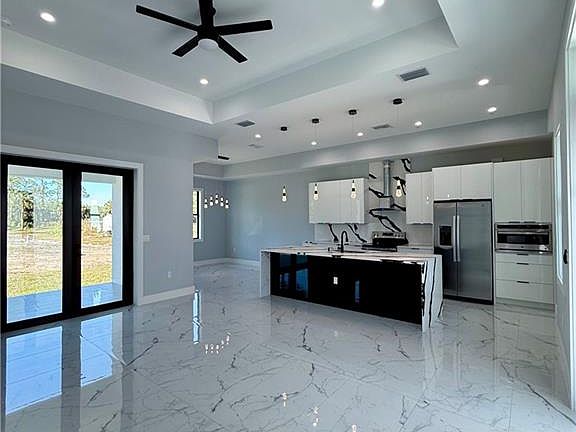 New unique construction,located on 1.14 acres in the tranquility of the Golden Gate Estates. This beautiful home includes 4 beds and 3 baths. A large lanai perfect for relaxing after a long day of work overlooking the backyard or for family gatherings. This home also features a bright & open formal dining & living room, quartz countertops, custom Acrylic gloss cabinets, Impact Doors and Windows , an auto sprinklers system, stainless steel appliances, tile floor, tankless water heater and many more. The 4th bedroom can be use as a mother-in-law suite or man cave offering a mini bar cabinets section and a private bathroom. This can be a great extra income if desired. This property is just what a buyer is looking for!!!! No HOA fees!!!!NO restrictions!!! Don't miss the opportunity to own this dream house only minutes away from Naples beaches