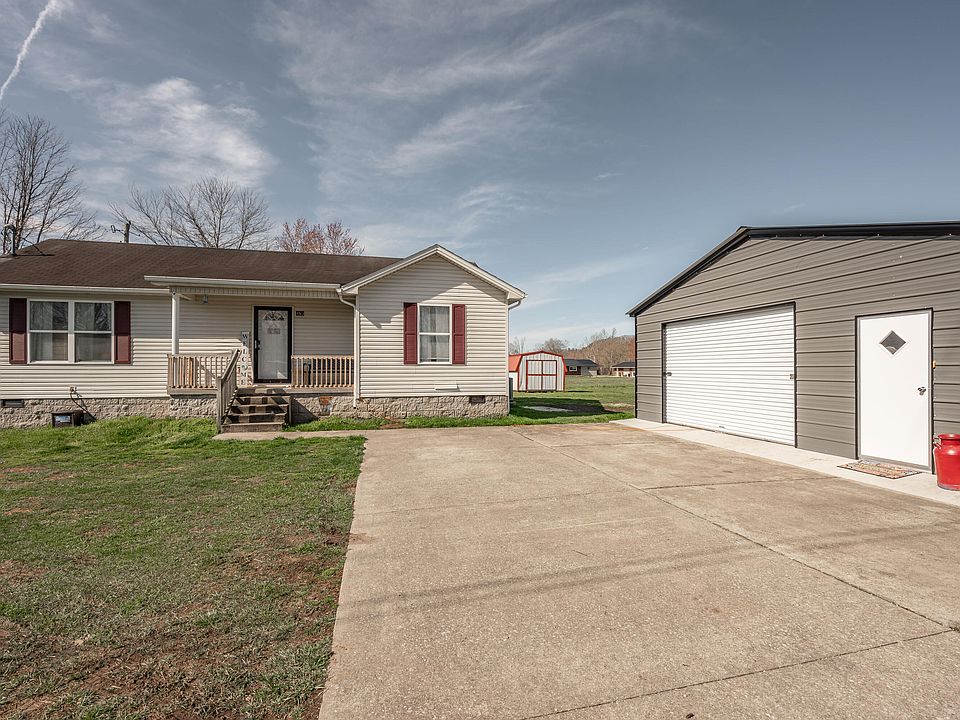 This ranch home gives you the feel of country living, but with the convenience of being located near the Mountain Parkway providing you with easy commutes to Winchester, Mount Sterling, and Lexington. The home has 3-bedrooms, 2-bathrooms, living room, laundry room, and eat-in kitchen. Crawlspace is fully encapsulated with dehumidifier installed. Luxury Vinyl Plank flooring has been installed throughout the home by Lowes in May 2023. The steel garage was built in September 2023 by Carolina Carports and is on a permanent concrete foundation. It has a custom 10x12 garage door. The front door has a Honeywell electric keypad that was bought and installed in September 2023.