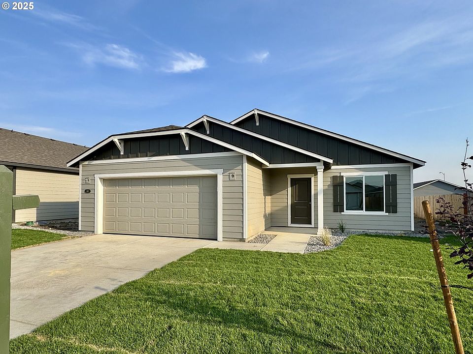 LOT:MS87 - Under construction - Estimated completion September 2025 - This exquisite 1701 SQFT one level home offers the perfect blend of contemporary design and comfortable living situated in the desirable McClannahan Summit neighborhood in Umatilla OR. 4 bedroom 2 bath with luxurious primary suite with double sinks, shower and large walk-in closet. Deluxe chef's kitchen with quartz counters, pantry, farm sink, island and stainless steel appliances including gas range and dishwasher. Great room open design, soaring vaulted ceilings, 95% high efficiency gas forced air heating, air conditioning, gas fireplace, dedicated laundry room, and covered patio. The Charlotte plan built by award winning builder MonteVista Homes.