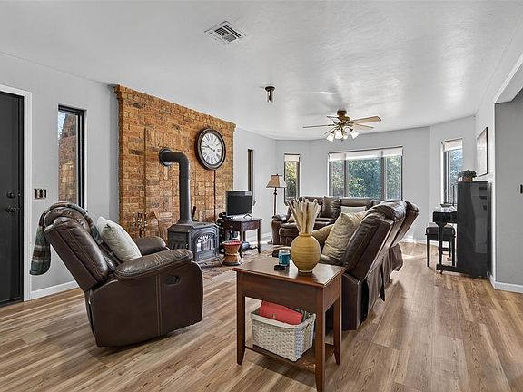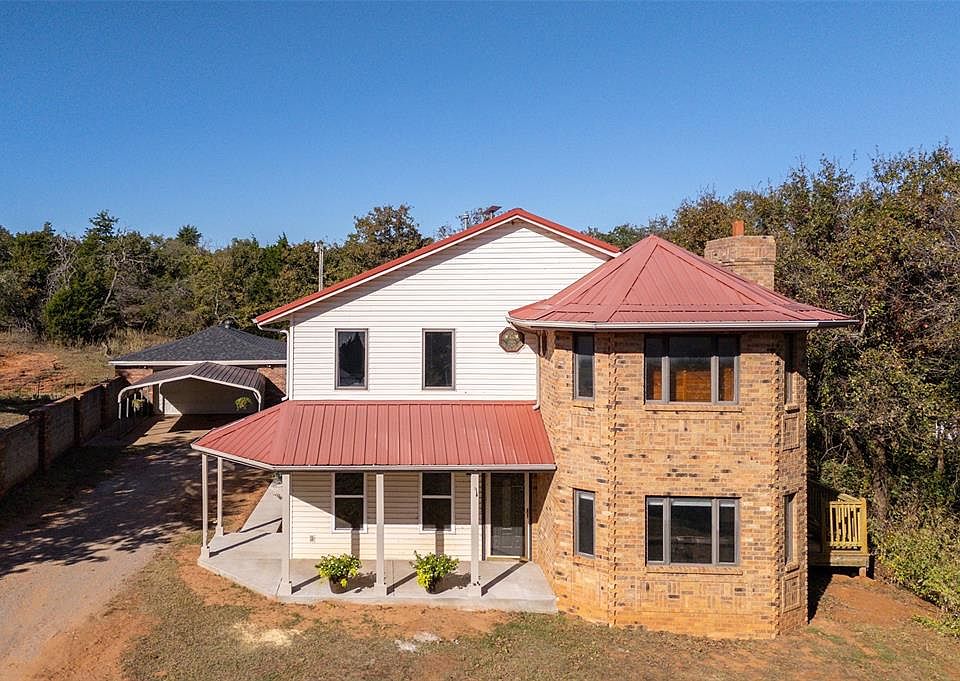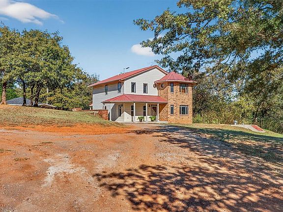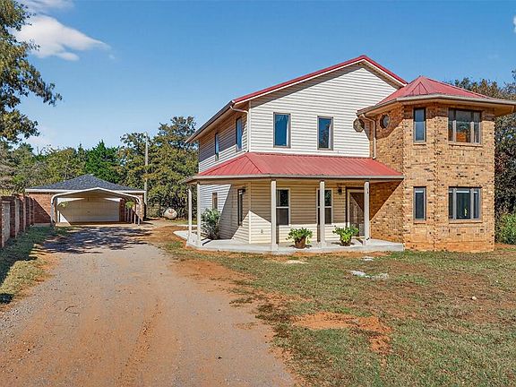 Discover the perfect blend of comfort, craftsmanship, and country charm on 11.4 (MOL) peaceful acres just a short drive from Oklahoma City. This traditional two-story home offers approximately 2,100 sq. ft. of well-designed living space featuring 4 bedrooms and 3 baths. Updated kitchen with new appliances, granite countertop, backsplash and paint. New flooring downstairs. Wood-burning stove adds warmth and character to the main living area. The wraparound porch and metal roof enhance the home’s timeless appeal, creating an inviting space to relax and take in the surrounding views. Practicality meets versatility with multiple outbuildings, including a loafing shed, detached two-car garage with new roof and carport. Surrounded by trees and abundant wildlife, this property provides the privacy and tranquility every nature lover desires, while remaining conveniently close to the amenities and opportunities of the city. Experience a lifestyle defined by space, serenity, and lasting craftsmanship.
