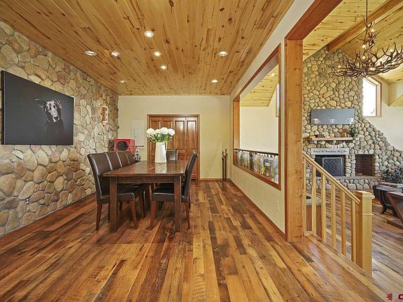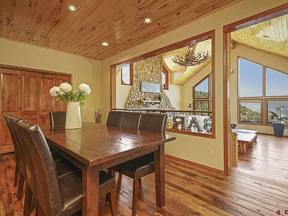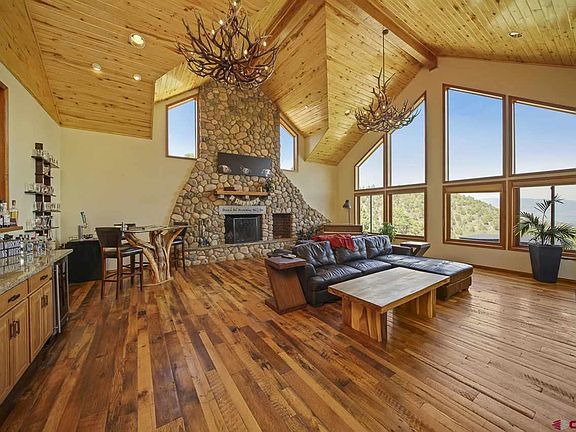 This beautiful ranch style home is situated on over 4 acres with captivating 360 degree views overlooking the Animas Valley and the mountains.The spacious property offers the solitude of country living while located only 15 minutes from downtown Durango. The home has a brand new roof, exterior paint, and new upgraded matching stainless steel appliances. The luxurious open floor plan home features wood floors throughout the house, sparkling granite counter-tops, central air conditioning, a game room or an office, a charming sun-room, formal dining room, and an eat-in kitchen. The home also includes a large laundry room, kitchen and walk in pantry. The impeccable large living room features a stunning floor to ceiling fireplace, a wet bar and a wall of windows that gives the room the bright openness of a sunroom. It is a great space to unwind and enjoy the views of the Durango wildlife by the cozy wood fireplace or entertain with guests by the built-in bar. The guests will surely find their way to the large deck with its hot tub and breathtaking views of the area. The property also features a fenced in yard, paved circular driveway and a low maintenance landscaping lush with pine trees. This home is perfect for a year-round home; a vacation home; or an investment property that could generate rental income in the years to come. This fine home truly defines the Colorado lifestyle.