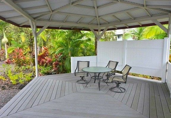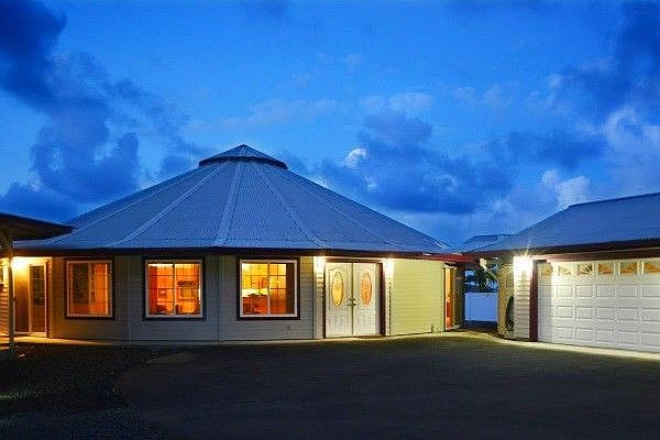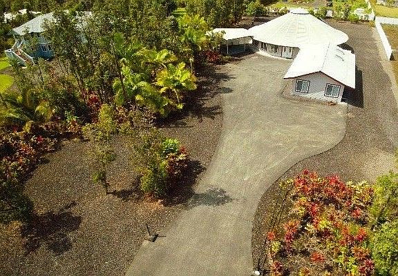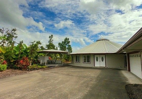 Come home to this captivating, impeccable gem: a custom Deltec residence at 483 Hookina Place, a luxurious home in the "round" built on a full acre of land. Experience privacy on this cul-de-sac of broad Hookina, a gracious location in upscale Sunrise Estates. Your new home is in the heart of Hilo, just around the corner from the University, and only minutes away from the hospital, shopping, offices, restaurants, Hilo Airport, surfing at Honolii, or beaching and snorkeling in Keaukaha. A mix of ornamental plants for a vibrant rainbow of colors first greets you. The seller has lovingly planted 500 bright Ti's, 30 Palms... and created a nature trail through old growth Ohia. What a wild jungle of colors. Wow! Marvel at the backyard landscaping: Avocado, Sapote, Rambutan, Lychee, Guava, Lilikoi, Eggfruit, Jackfruit, Soursop, Starfruit, Tangerine, and Surinam Cherry.In the main house there are 3 bedrooms (1 BR doubles as an office), 2 baths with a Great Room, and an interior laundry; aside sits a two car enclosed garage together with a separate studio and bath with private entry. Kitchen features new matched stainless appliances, gas stove top and granite counter tops. Kitchen, dining and living areas are part of the Great Room making for seamless entertaining-a chef's delight! This futuristic Hilo home possesses an upbeat yet gentle feeling. Enjoy cool, stylish ceramic tile floors in the great room and baths, with ceiling fans throughout this home, along with mostly LED lighting, and cathedral ceilings in the great room and bedrooms. Are you ready for that ahhhh feeling?Laundry features a new front load washer. The large gazebo aside the home will become your favorite place, relaxing and cool on the hottest days. Great place for a barbecue! A small space off the garage provides for a sunrise breakfast sitting area. The yard is xeriscaped and needs practically no upkeep. Make 483 Hookina Place your new address today. Refer to MLS#619246