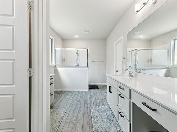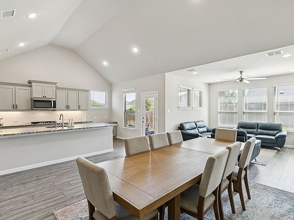 Welcome to 483 Rock Creek Dr, Princeton in Brookside! This modern contemporary Trophy home offers 5 spacious bedrooms, a dedicated office, game room, media room, and 3,585 sq ft of masterfully designed living space. Situated on a 55-ft lot, this architectural gem delivers impressive curb appeal with sleek lines, stone accents, and striking modern elevation. Step inside to an open-concept layout filled with natural light, soaring ceilings, and premium finishes throughout. The chef-inspired kitchen features granite countertops, subway tile backsplash, stainless appliances, upgraded cabinetry, and a large island perfect for entertaining. The main living area boasts a modern fireplace and wall of windows overlooking the covered patio and private backyard. The luxe primary suite offers a spa-like bath with dual vanities, a soaking tub, and walk-in shower. Enjoy movie nights in the fully-equipped media room, and casual hangouts in the game room. Refrigerator, washer and dryer convey. A rare find that blends style, comfort, and convenience!