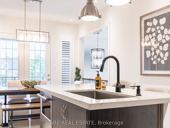 Escape to your dream home in this expansive 3-storey freehold townhouse, offering over 2,518 square feet of above-ground living space and the feel of a semi-detached home. Immerse yourself in a world of bright, airy living spaces accentuated by unobstructed views throughout. Unwind with beautiful parks nearby, perfect for nature walks or picnics. Entertain effortlessly in the open concept layout, where high ceilings and pot lights enhance the spacious feel. Unleash your inner chef in the luxurious eat-in kitchen, boasting a generous island, quartz countertops, a large walk-in pantry, coffee station, and premium stainless steel appliances including a gas stove. Charming French doors lead to a private balcony, perfect for extending your living space outdoors. The open plan flows into the oversized living room showcasing an electric fireplace adding cozy ambience, wainscoting and open views. Upstairs, you'll find a haven for relaxation with three spacious bedrooms, a full bathroom, and a separate laundry room. The master suite retreat features a private 4-piece ensuite with a soaker tub and a large walk-in closet, ensuring ultimate relaxation. This versatile living space caters to your needs. An additional room on the main street level adjacent to a full bath offers wonderful flexibility as a spacious fourth bedroom with plenty of natural night (potentially as an in-law suite space) or perhaps a private office for work-from-home life. Basement offers lots of potential. Two main entrances offer added convenience, with direct access to the garage from the laundry room. Additional features include premium window coverings throughout, Quartz countertops, Wainscotting in office and living room as well as stairway space, upgraded lighting, new carpets (2023), and an EV charger plug done to code. Don't miss this opportunity to own this exceptional, well maintained home!