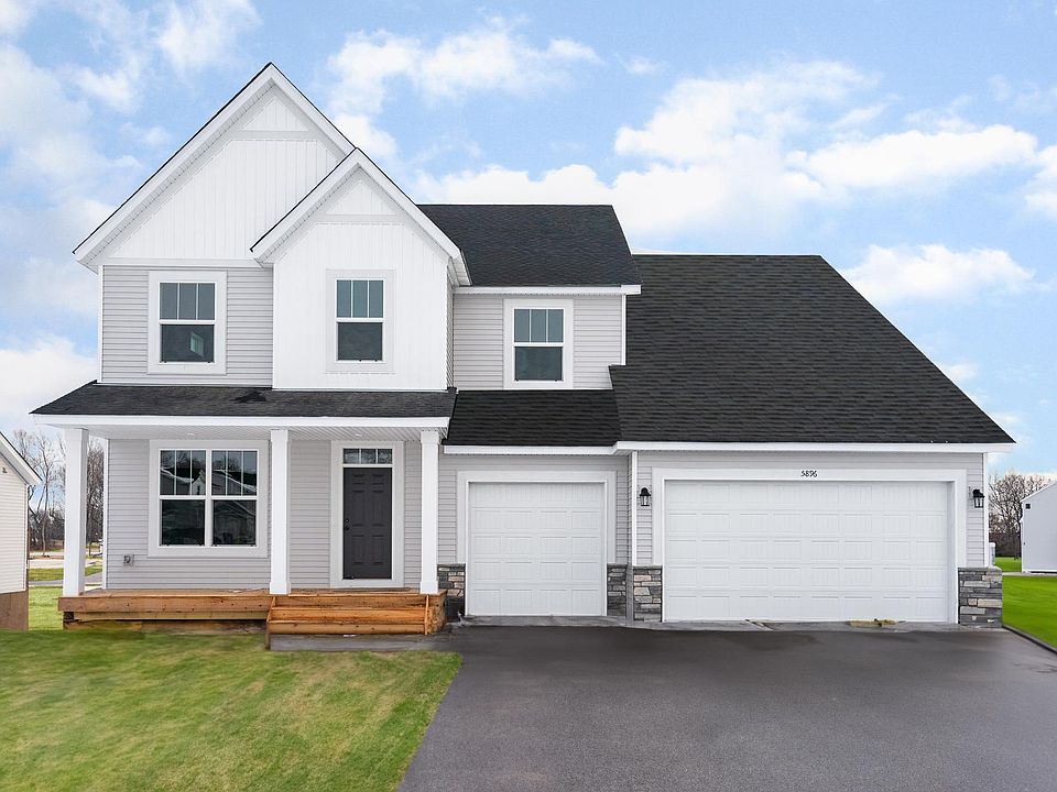Welcome to the popular Water Stone floor plan with Capstone Homes in Hugo! Quick move-in available! This 4,731 sq.ft. home boasts many desired features including: desirable homesite, gourmet kitchen with built-in appliances, main level bedroom next to full bathroom, extremely spacious floor plan, owner’s suite bedroom with an abundance of natural light and towering ceilings along with a private bath with tiled walk-in shower, soaking tub, and giant walk-in closet, upper level Jack and Jill bathroom, upper level loft, fully finished walk out basement, fireplace with beautiful accent from floor to ceiling, expanded luxury vinyl plank flooring on the main level, expanded covered front porch, and much more! Sod, landscaping, and irrigation to be installed!