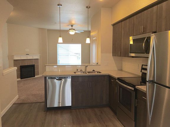 All of our apartment homes and townhouses have spacious open floor plans; kitchens with stainless steel appliances, a breakfast bar, and beautiful laminate hardwood floors. Town homes include a private balcony, a 2 car garage and extra space upstairs perfect for an office, play area, etc. We have a 24 hour fitness center and will have a clubhouse theater, a business center, a pool & hot tub, a play ground, dog park and a basketball court!! We are even offering free YMCA memberships until our pool is completed!