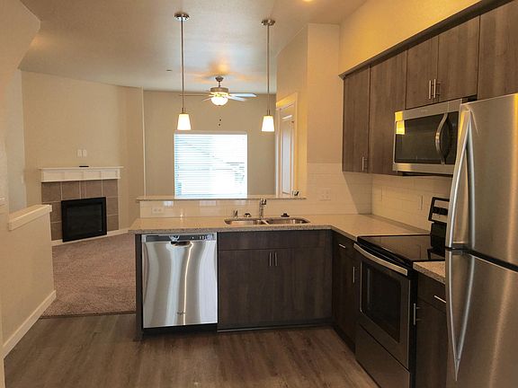 This townhouse has a LARGE two car tandem garage with storage space! On the second story above the garage has a large living, kitchen, half bathroom, and dining area with a private balcony. The third floor has the 2 bedrooms and 2 full bathrooms with a den area in between. You'll feel right at home! It has only been lived in once before and is only a year old! RARELY is this floor plan available! Water/Sewer/Garbage additional $90 per month. Pet friendly with additional pet deposits and pet rent