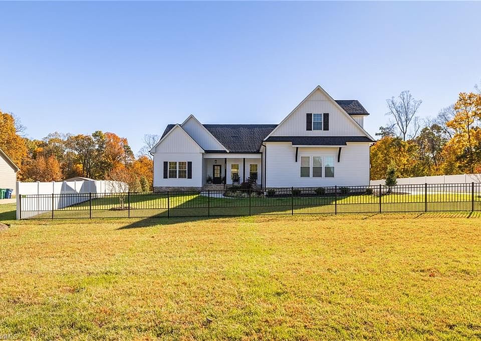Custom-built home with high-end finishes throughout. The open-concept Great Room features vaulted ceilings and a handsome stone fireplace. The Luxury Kitchen features premium Cottage White custom cabinetry, a huge island, granite counters, tile backsplash, & stainless appliances. Granite countertops in baths, all closets feature wood shelving, and hardwood floors on most of the main level. Main Level Primary Suite offers a tray ceiling, large walk-in closet, and spa-like en-suite bath with/ oversized shower (incl. waterproof Schluter system), & freestanding tub. Bedroom/bonus room with en-suite bath on 2nd floor & a large walk-in attic provides extra versatility & storage. Advanced systems include a tankless Navien water heater, cast iron piping for noise reduction, & Pella windows. Exterior highlights: Sliding smart driveway gate, decorative & privacy fencing, screened porch, large patio, extensive landscaping, & an oversized garage. Smart home tech operates the gate & garage.