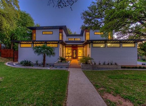 Beautiful modern home recently reconstructed & perfectly situated on an oak canopied lot in Rollingwood. Arguably the best location in Austin. The house is designed around a courtyard that is visible through oversized windows which blend the natural exterior w/ interior spaces. First floor is open to a grand entry w living areas separated by walnut shelves, a modern kitchen, and 3 guest rms & 2 bths. Upstairs offers game room, a master ste., and 2Jr. stuites. Finally 3 cvd outdoor spaces w room 4 pool.