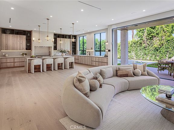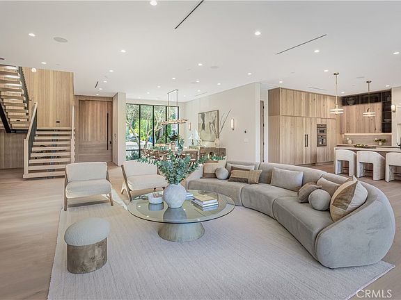 Perfectly Curated New construction on a quiet cul-de-sac within a premier Encino location. This estate perfectly blends cutting edge amenities and warm organic design elements while providing ultimate comfort. Expansive open floor plan and soaring high ceilings flood the home with natural light. Exquisite chef's kitchen displaying an oversized center island with breakfast seating, top-of-the-line Thermador appliances, and custom built oak cabinetry. In addition, the main level offers a spacious home office with a separate entry, and a fully-equipped movie theater perfect for family movie nights. Luxurious primary suite offers a massive walk-in closet, and spa-like bathroom with soaking tub, walk-in shower, double vanity counter space, and an enclosed patio perfect for relaxation. The entertainers yard features a sparkling pebble-tech pool/spa, ample grassy area, built-in BBQ and fire pit lounge area. Home is gated for maximum privacy, and equipped with a Control 4 Smart system, solar panels, surround sound, and security cameras throughout.