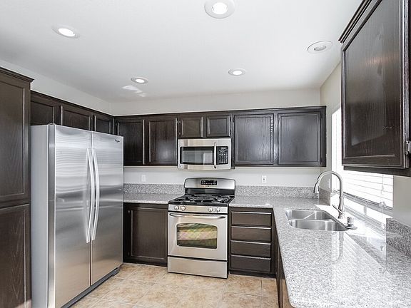 You will feel right at home in this 3 bedroom, 2.5 bathroom rental located in North Las Vegas! Once inside, you'll greeted by a beautiful vaulted ceiling and great room that flows into an expansive eat-in kitchen with stainless steel appliances, gas range stove and dark wood cabinetry. Upstairs you'll find a loft space that would make a great office or media areas. All bedrooms are nicely sized, including the master with en suite. The exterior boasts a 2 car garage and large, fenced-in backyard. Schedule your tour today!