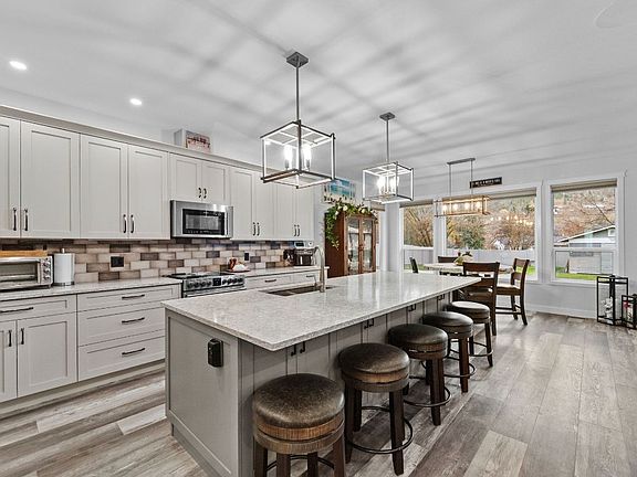 Discover this beautifully crafted 2021 Rancher in Rayleigh, offering effortless main-floor living on a private, fully fenced 1/2 acre lot with durable vinyl fencing. Inside, the home features 3 bedrooms and 3 bathrooms, highlighted by a stunning Excel Kitchens design with a 10-ft quartz island and open-concept layout, and Frigidaire Professional appliances. Off the main living area, enjoy a full covered patio, perfect for year-round outdoor living. The luxurious primary suite includes an extensive ensuite with a tiled shower, a walk-in closet, and its own private balcony overlooking the yard. This property is loaded with premium features including built in Sonos speakers in sitting and living room underground irrigation, central vacuum, Gemstone exterior lighting, gas hookups for a BBQ and fire pit, 8-seater hot tub and gazebo, and a convenient backyard shed. Enjoy exceptional parking with a 2-car garage plus a single-car pull-through garage. The attached 2-bedroom suite, complete with a private entrance, offers fantastic flexibility for extended family or rental income. Located close to the elementary school and nearby parks, this home brings together comfort, convenience, and quality in one exceptional package. Modern, private, and thoughtfully equipped—this Rayleigh home truly has it all.