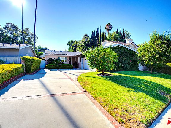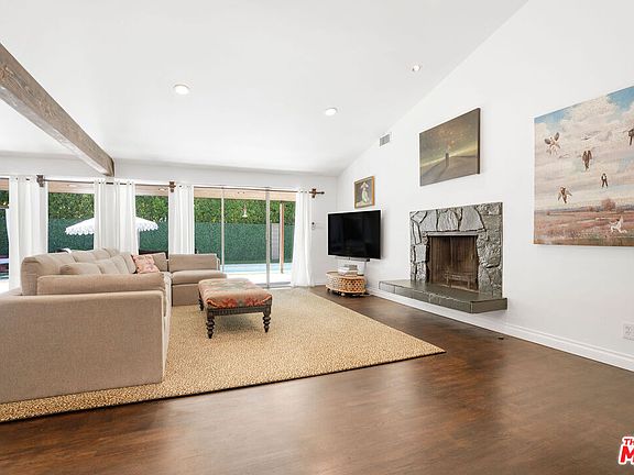 It begins the moment you turn onto a quiet cul-de-sac and pull up to a modern retreat that feels more like a private getaway. Equal parts mid-century modern and resort, it's a home designed for living beautifully. Step through the front door and you're immediately greeted by soaring vaulted ceilings and an open, sunlit space where the kitchen, dining, and living room flow together while walls of glass open to the backyard, blurring the line between indoor and out. The re-imagined kitchen is ready for both everyday cooking and lively entertaining with its newer Jenn-Air six-burner stove, KitchenAid stainless steel appliances, and generous elegant Quartz counter space. The gas-burning fireplace anchors the open living room, offering warmth and character. But the real story unfolds outside where this home shifts into full Palm Springs resort mode. The backyard was JUST completely reimagined with a new saltwater pool finished in mini-pebble and marble tile, a Baja shelf for lounging, and LED lights (must see photos!) that transform the water's mood at the push of a button for a jaw dropping evening spectacle of color. Back inside, 3 generous bedrooms, 3 baths and lots of closet space await. The primary suite overlooks the backyard retreat, a quiet perch where mornings begin with coffee and a front row view of birds and squirrels playing. Its en suite bath, fully renovated last year, combines Quartz counters and clean lines with thoughtful details, including a built-in vanity seat and spa-like shower with AKDY 52 In. 8-Jet multi-function tempered glass panel system. Luxe! Another en suite bedroom/bath with private entry and a guest room sit next to the fully remodeled common area bathroom. Behind the scenes, the upgrades are just as compelling: a new roof (2022), AC compressor (2023), plumbing overhaul (2021), attic insulation (2025), and water heater (2021) make the home ready for many years to come. Past the 2 car garage with 3 large closets, the front yard blooms with lemons, limes, roses, birds of paradise, hydrangea and aazeleas. Friendly neighbors keep an ongoing text chain looking out for each other. And while the home feels like a tucked-away escape, it's just a short walk to the ENERGY of Ventura Boulevard, with its restaurants, cafes, and shops. Quick access to the 405 and 101 makes the rest of the city just as reachable. Walk through: https://youtu.be/fnDeFtRQrAk