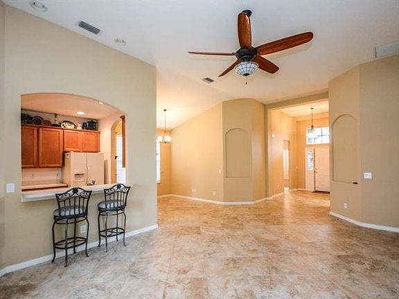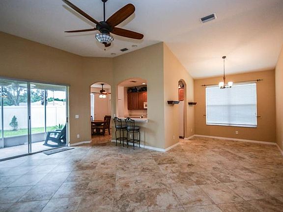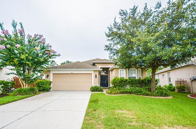 Spacious Saddlebrook Village 3br/2ba/2cg home boasting 1720SF of living space and is move in ready! Immediately, you'll be impressed with the attention to detail and beautiful CURB APPEAL. Upon entering, you are greeted by high ceilings, arched doorways, oversized diagonally laid tile, and a flexible floor plan that is great for entertaining. The large family room is perfect for relaxing and the neutral colors will go with just about any decor. The bright kitchen includes solid wood cabinets, a sunny breakfast nook, a newer dishwasher, a pantry, and a small breakfast bar. The master retreat is large and easily accommodates bigger furniture with ease and flexibility. The en suite bath boasts his & hers sinks, a garden tub, and a walk-in shower. The two additional bedrooms are both bright and offer ample space. Out back, enjoy the enviable Florida weather on the screened patio surrounded by lush backyard complete with privacy fencing and a small plantain tree. Nestled in the beautiful subdivision of Westbrook Estates, Saddlebrook Village is a master planned community with resort style community pool, playground, tennis, and more! NO CDD and LOW HOA FEES! Just minutes to I75, I275, schools, and all the best shopping!