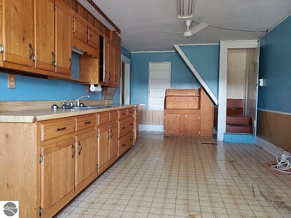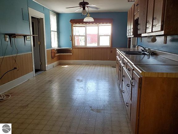 Enjoy country living at this 5 bedroom Farm-Style home on 5 acres! Home features front sun room, living room, spacious gathering room, kitchen with dining area, large utility room/mud room, main floor primary bedroom plus additional main floor bedrooms, full bath, and 5 upper level rooms. Partial basement for additional storage. Covered front porch. Detached over-sized 2 car garage with workshop area, plus 3 additional barns.