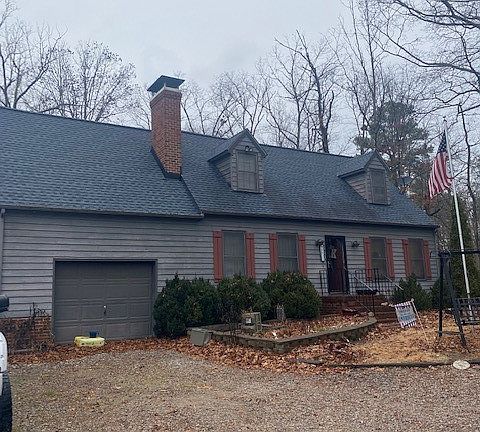 Motivated Sellers. Very cozy Cape Cod is ready for you. The roof was recently replaced. Attached garage with storage. A full bath up and a full bath down. 2 bedrooms down and 2 bedrooms up. Bonus room over the garage. Open family room and kitchen with a stone wood stove/ Enerzone wood insert stove, capable of heating whole house. This house is set privately away from the road in quiet Charles City, but it is a quick shot to employment centers such as Ft. Eustis, Varina, Hopewell, and even Ric. Sold as is Fireplace flue chimney recently updated.New hotwater heater. Fireplace and lean-to structure sold as is. Plenty of square ft space with a large lot to make your own.