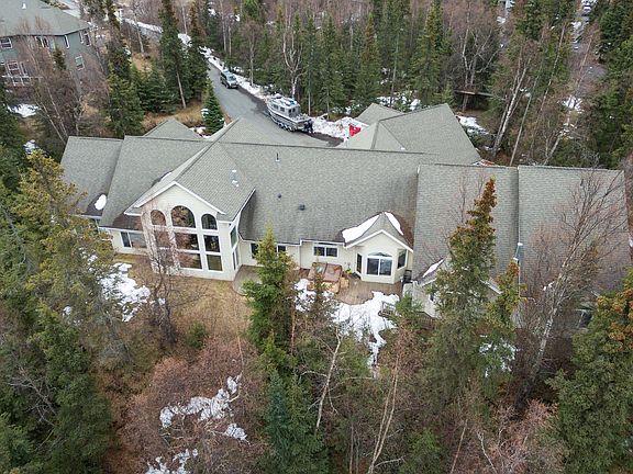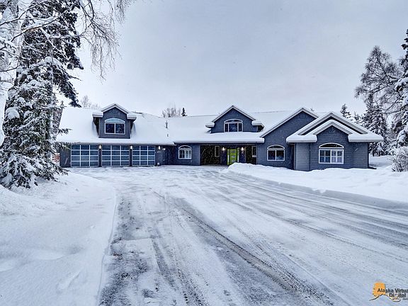 Contemporary ranch estate situated on a wooded acre above Rabbit Creek. Massive great room windows bring nature in while showing off views of the inlet and Alaska Range beyond. The impressive, chef's kitchen is built for entertaining and the theatre room is perfect for winding down after a long day. The large mother-in-law suite can double as a childrens' or guest wing. A definite must see!
