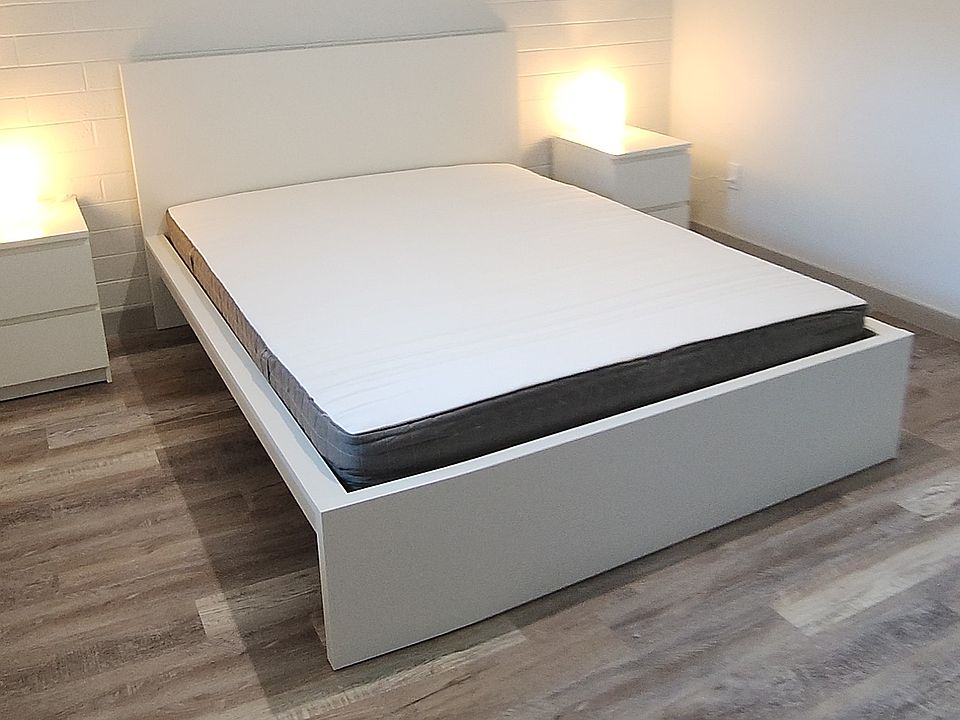 Bedroom furnishings include queen bed, night stand and generous closet/storage space. Room is large enough to easily accommodate additional Tenant items such as sofa, entertainment center or home office.