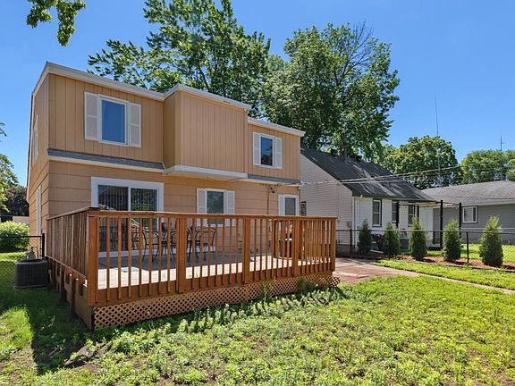 Charming home with many appealing features. The eat-in kitchen boasts a vaulted ceiling. The living room and formal dining room feature hardwood floors, crown molding, an electric fireplace, and a walk-out patio door leading to a large deck, perfect for entertaining. The main level includes a bedroom with corner windows and a bathroom with a whirlpool tub. The upper level has a master suite with a spacious bedroom, bathroom, and a den or non-conforming bedroom. The lower level offers a family room, wet bar, utility/laundry room, and a roomy bathroom. The property also features a two-car oversized garage with additional parking spaces and a ramp to the backyard. Enjoy beautiful garden views and a large, city-maintained green space with mature trees located across the alley.