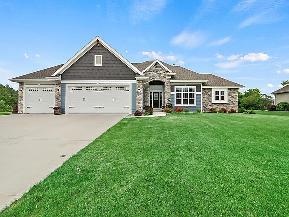 Live with nature in this custom ranch situated on a pond in Shadow Wood Subdivision. View an abundance of wildlife and go fishing in your back yard! This home features a stunning gourmet kitchen including granite counter tops, Viking cook top, KitchenAide appliances and custom stone hood. Beautiful stone work through out this gorgeous craftsman style home. Hardwood & Tile floors. Roman shower and large WIC with closet system in master suite. Lower level features a Rec-Room with wet bar, 4th bedroom w/egress window and 3rd full bath. Entire home is wired with WIFI speakers including the patio area.
