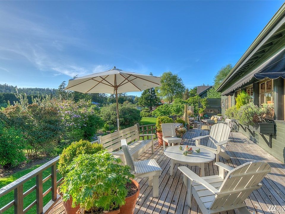 Lifestyle flexibility to live/work/entertain on impeccable 3 acre compound in Deer Harbor hamlet near float planes & marinas. Marine views across 2 acre meadow provide setting for unique, 2 bedrm 4,000 sf main house w/ dramatic open floor plan.Soaring ceilings, exposed trusses, wood floors & stone hearth. Light-filled w/ French doors leading to sunny western decks. Charming cottage suites, studio/office, 3 bay garage, chicken coop & outbuildings all nestled among mature gardens.Active VR permit.