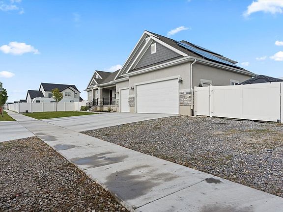 Welcome to this versatile property on a full acre lot, offering space, flexibility, and modern upgrades. The home is complemented by a fully finished ADA-accessible basement apartment with its own kitchen, laundry, private entrance, two bedrooms, and one full bath, plus an unfinished area already framed for a future bathroom in the other side of the basement. Currently rented for $2,000/month, it's a fantastic income opportunity or ideal in-law suite. Sustainable living is built right in with full solar panels and backup battery, which will be paid off at closing. The expansive lot is fully fenced and includes RV parking with sewer access, while the backyard is an unfinished blank canvas ready for your vision. Inside, thoughtful details shine, from the spacious living room with built-in shelves to the oversized pantry, large laundry area, and abundant storage throughout. Outdoor living is just as inviting with a generous back patio, perfect for entertaining. With its combination of rental income, energy efficiency, and room to grow, this property offers an incredible opportunity. Square footage figures are provided as a courtesy estimate only and were obtained from the building plans when the house was built. Square footage on past MLS listing is wrong. Buyer is advised to obtain an independent measurement.
