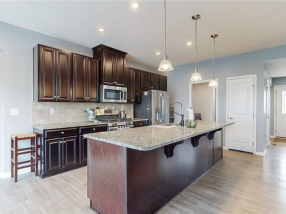 Built in 2018, this beautiful ranch is ready for its new owners. Located in Field LSD! Enter into the spacious open floor plan featuring a dedicated dining area and large living room with a cozy fireplace. The kitchen is a chefs dream with a huge island, abundant cabinetry and a layout perfect for entertaining. The primary suite boasts a luxurious en-suite bathroom and large walk in closet. Two additional bedrooms share the hallway bath on the opposite side of the home, offering space and privacy. Enjoy the outdoors on the oversized deck which was just stained in 9/2025--ideal for hosting! The finished basement has a wet bar, half bath and a pool table that stays with the home. Don't miss out on this great home! Water Softener- 8/2025