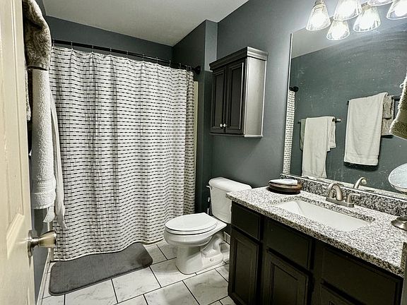 The house boasts a fully finished basement that includes a cozy living room, half bath, laundry area, and a versatile bonus room currently utilized for storage. This additional space is ideal for various family activities or could be transformed into a guest room. The heart of the home features an updated kitchen adorned with sleek granite countertops and mostly new flooring, enhancing the modern appeal.